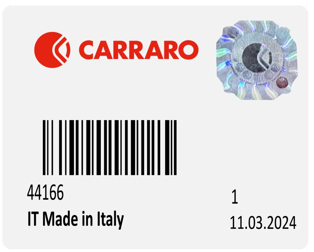 Debes revisar la placa de identificación del componente. En el caso de la caja de cambios, esta placa suele estar ubicada sobre el cuerpo de la transmisión. Para el eje diferencial, puedes encontrar la placa en la funda, cerca de la corona. Estas placas contienen información clave que permite identificar si se trata de una transmisión Carraro. Solo necesitas tomar una foto clara de la placa y enviárnosla; nosotros nos encargamos de verificarla por ti.